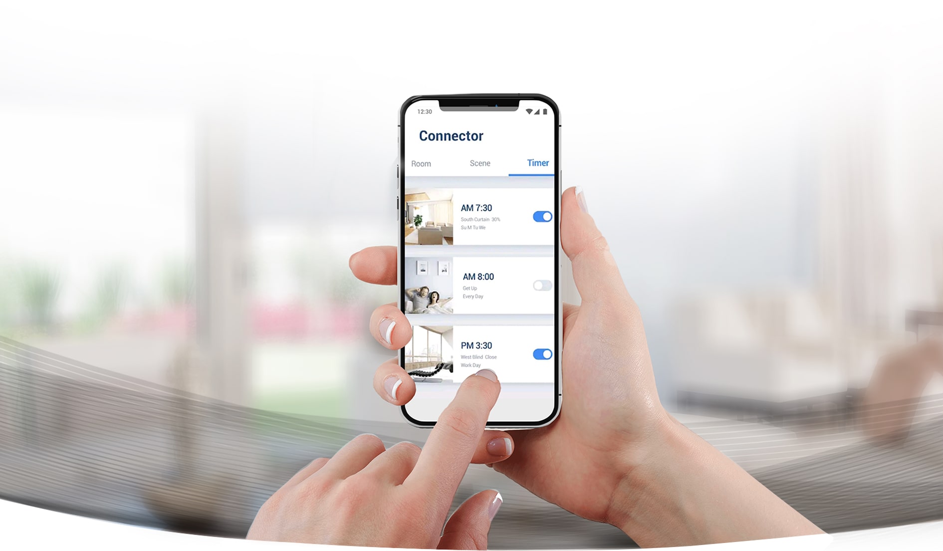 Programa escenas y horarios para la operación automática de tus persianas.*