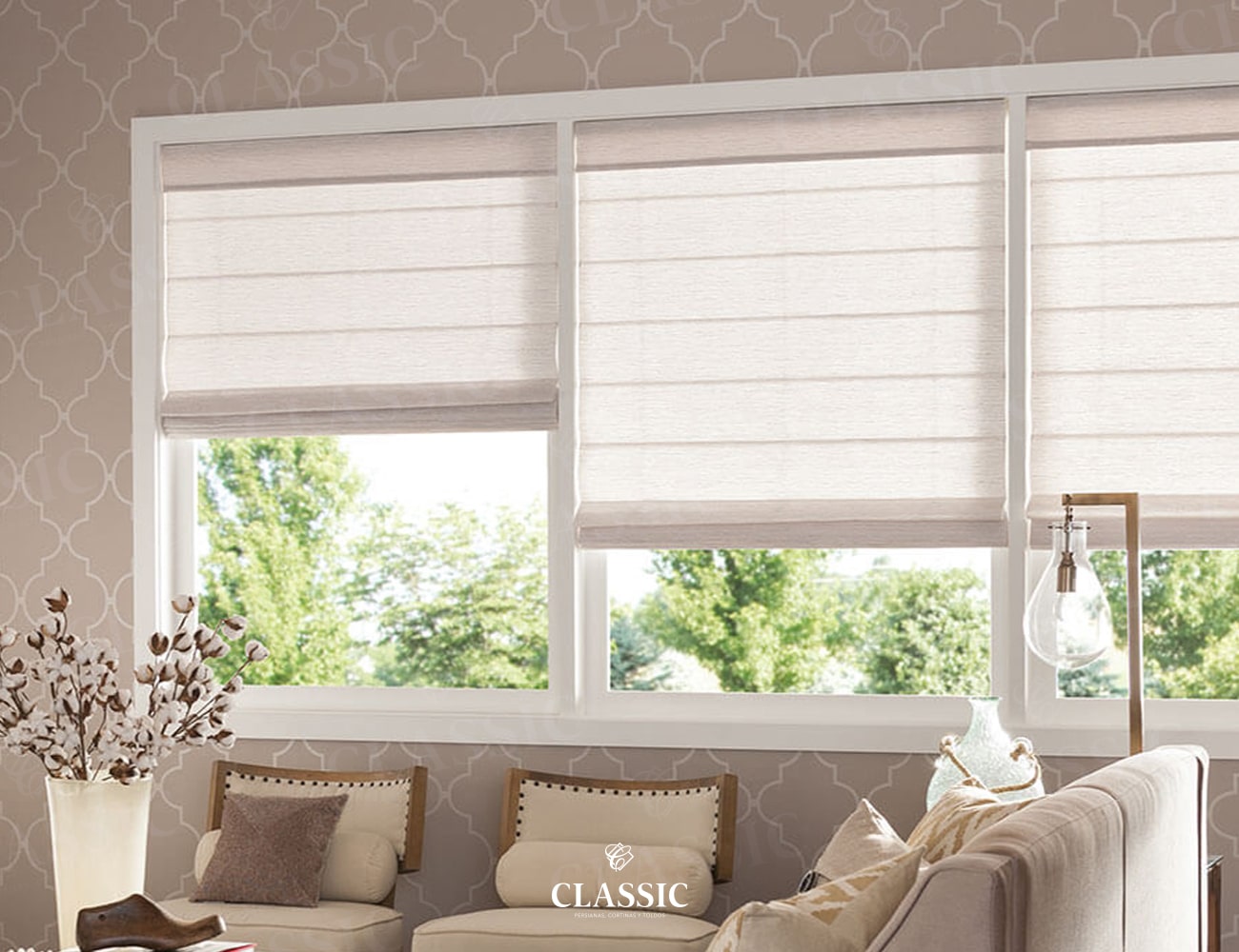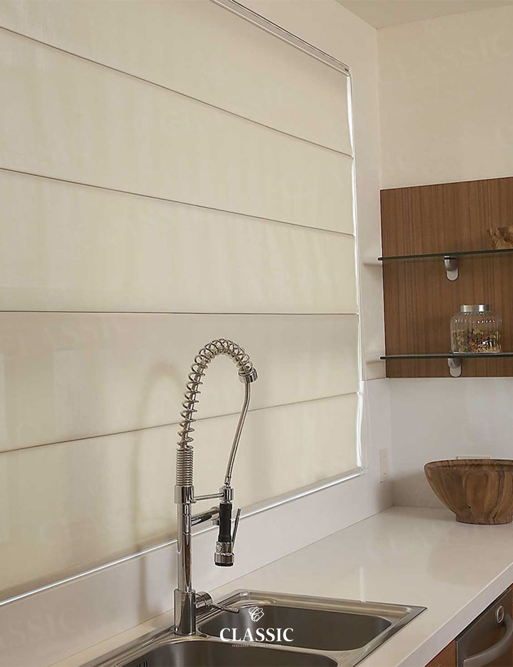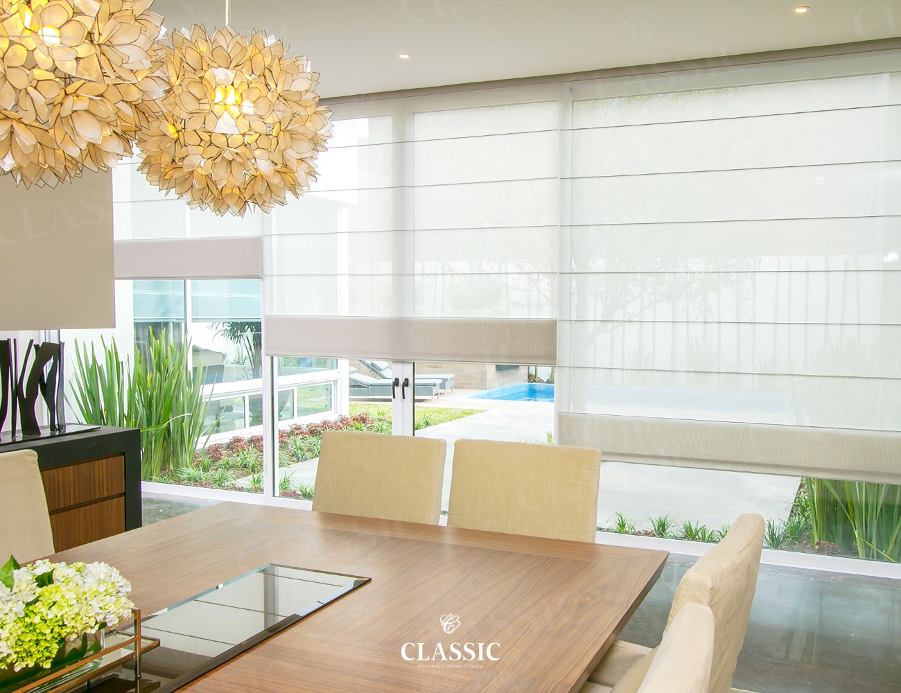 Nuestras persianas Romanas con su apertura de pliegues agrupados