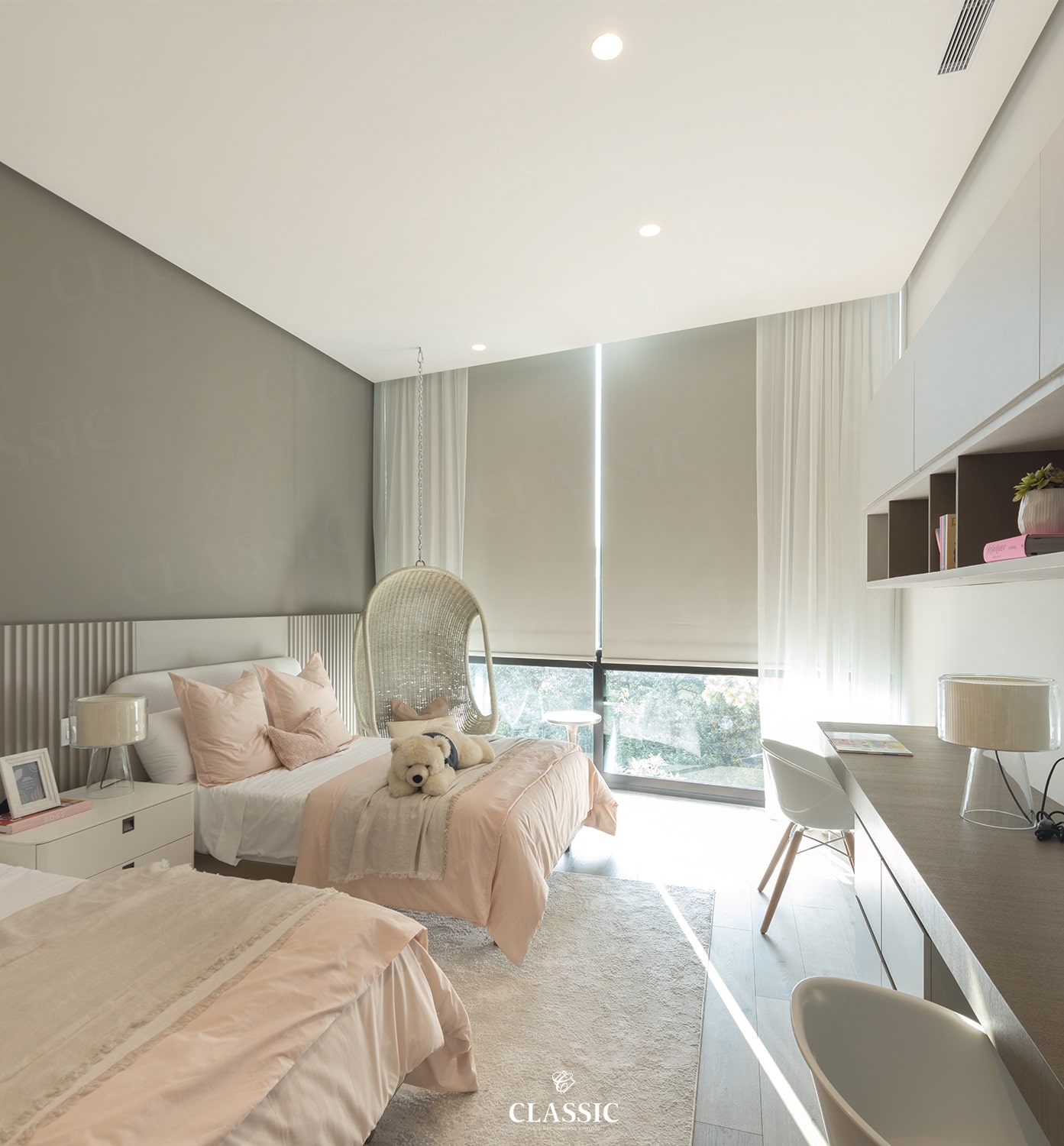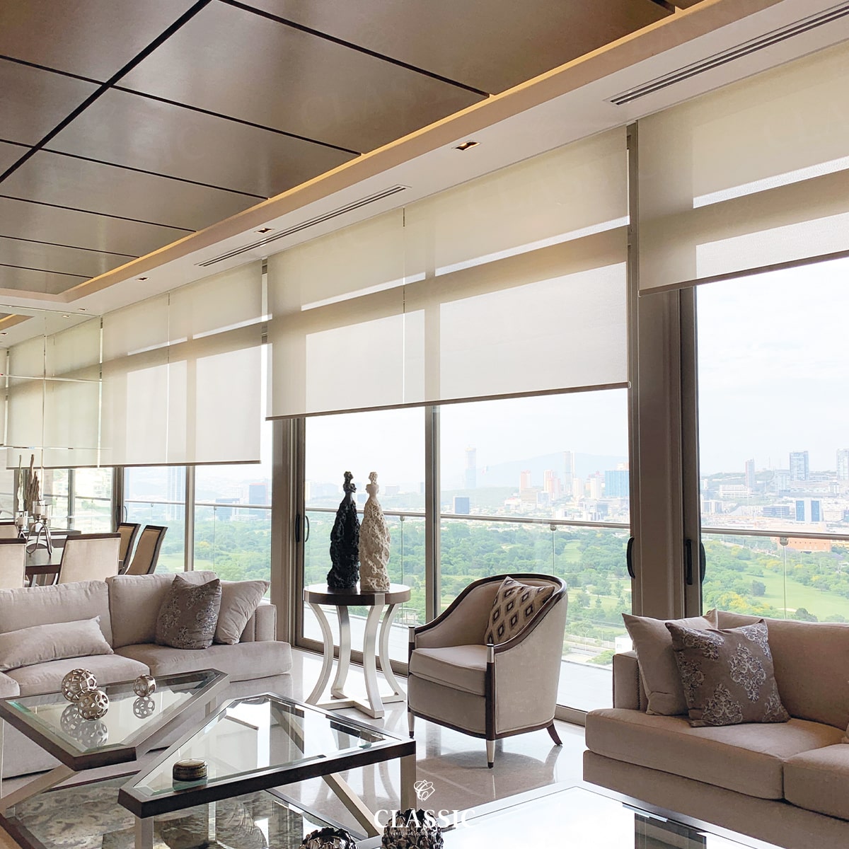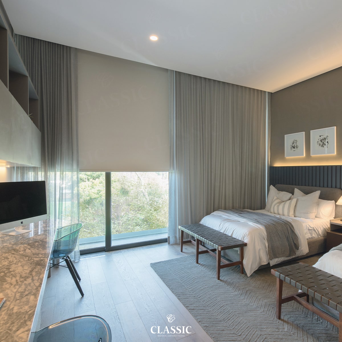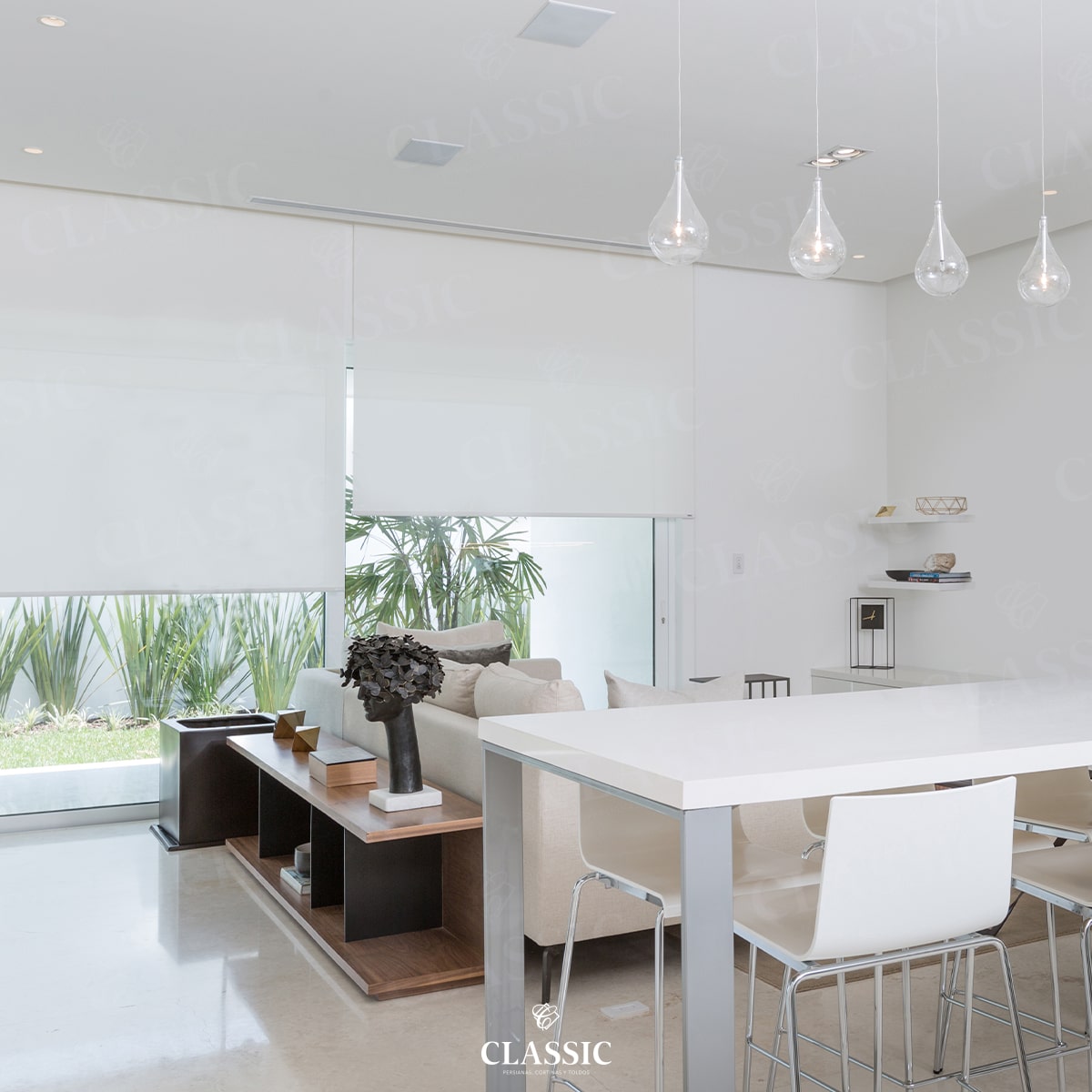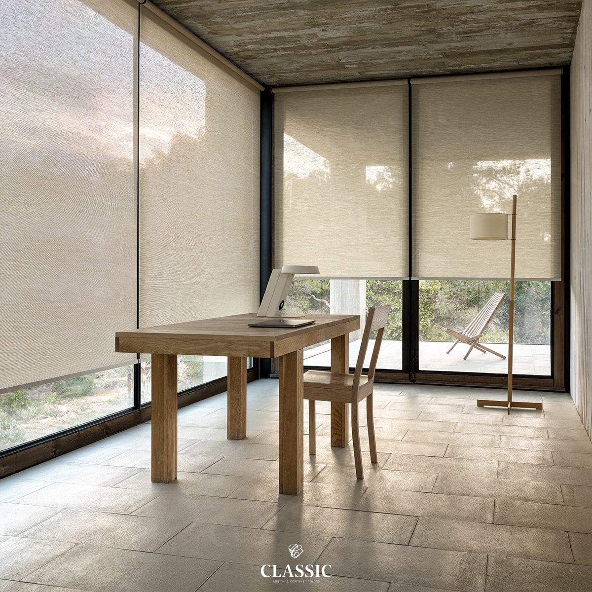 Las persianas Roller Shades o enrollables son las más famosas en el mercado por su diseño moderno y práctico con 3 tipos de tela (blackout, traslúcida y screen) que te ofrecen la solución perfecta para tus necesidades de privacidad e iluminación.