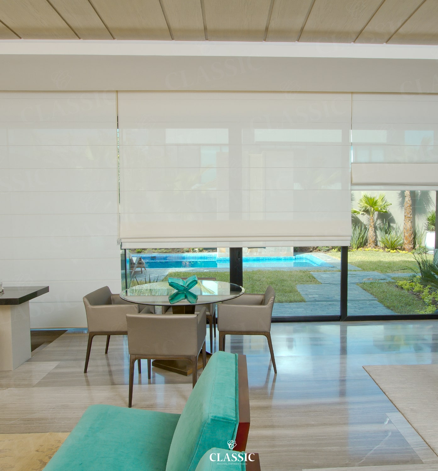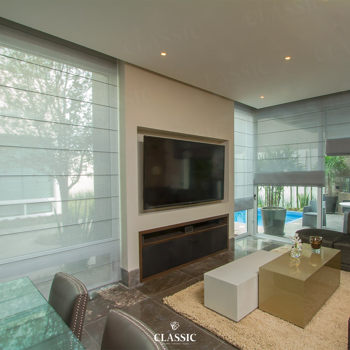 El estilo único de Roman Shades se adapta tanto a espacios clásicos como a espacios contemporáneos. La gran variedad de telas y estilos hacen de Roman Shades una excelente opción para quienes buscan la elegancia de una cortina con la practicidad de una persiana enrollable. Roman Shades te ofrece 3 tipos de tela: traslúcida, blackout y screen